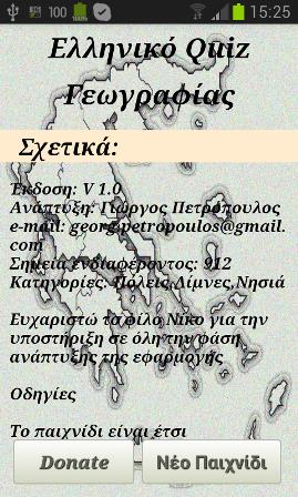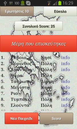 Μια αρκετά εκπαιδευτική εφαρμογή, που περιλαμβάνει ερωτήσεις γεωγραφικού περιεχομένου για την Ελλάδα, σας παρουσιάζουμε σήμερα. Διάλεξε τoν αριθμό και την δυσκολία των ερωτήσεων και προσπάθησε να απαντήσεις σωστά σχετικά με την ερώτηση. Για παράδειγμα, σε ποιο νομό βρίσκεται η Πόλη Καλαμάτα; Η εφαρμογή σου δίνει τέσσερις πιθανές απαντήσεις. Μία όμως είναι η σωστή. Στο τέλος μπορείς να δες πληροφορίες για τα μέρη που επισκέφτηκες. Με αρκετά εκπαιδευτικό χαρακτήρα, η εφαρμογή αυτή αποτελεί ένα άριστο παιχνίδι για παιδιά δημοτικού και όχι μόνο.