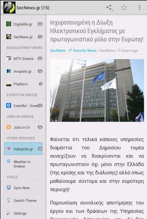 Αν είστε από εκείνους που θέλουν να τα μαθαίνουν όλα πάντα πρώτοι τότε σας έχουμε την καλύτερη εφαρμογή για αυτό το σκοπό. Το all around Greece έχει όλες τις ειδήσεις μαζεμένες και σας τις παρουσιάζει σε μια και μόνο εφαρμογή. Περιλαμβάνει ειδήσεις από τα μεγαλύτερα ειδησεογραφικά πρακτορεία της χώρας, βίντεο αλλά και προβλέψεις για τον καιρό από το meteo.gr. Οι ειδήσεις προέρχονται από τα: Lifo.gr Newsbomb.gr, Protothema.gr, Ethnos, Living in Greece, Tanea.gr, eNet.gr, Kathimerini.gr, Digitallife.gr, EMEA.gr, GalsnGuys.gr, PrismaNews.gr, neolaia.gr, E-go.gr, Womenonly.gr. Επίσης λαμβάνει μουσικές πληροφορίες από MTV Greece, Avopolis, Platform.