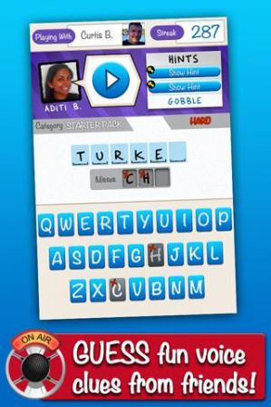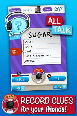 Ένα κοινωνικό τύπου παιχνίδι που θα ξετρελάνει εσάς και τους φίλους σας. Παίξτε με όλη την παρέα σας όπου και αν βρίσκεστε σαν να είστε όλοι μαζί. Θυμίζει λίγο το taboo αλλά στην πιο εξελιγμένη μορφή του. Για αρχή θα σας δοθεί μια μυστική λέξη που μόνο εσείς θα γνωρίζεται και οι φίλοι σας θα πρέπει να μαντέψουν ποια λέξη είναι αυτή. Για να τους βοηθήσετε μπορείτε να ηχογραφήσετε διάφορα στοιχεία και να τα στείλετε στους φίλους σας. Προσοχή όμως μην πείτε τις απαγορευμένες λέξεις. Ένα πολύ διασκεδαστικό δωρεάν παιχνίδι που θα σας ξετρελάνει.