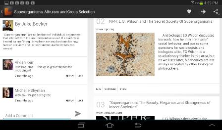 Το Learnist για Android smartphones και tablets είναι η εφαρμογή που κάνει τη μάθηση και το διάβασμα την πιο συναρπαστική εμπειρία. Η φιλοσοφία της είναι απλή αλλά συνάμα απίστευτα μεθοδική αφού θα έχετε μπροστά στα μάτια σας όλες τις πληροφορίες για αυτό που ψάχνετε. Εύκολα και γρήγορα η εφαρμογή θα συμπεριλάβει στην τελική στο διαδίκτυο, βίντεο, e-books, χάρτες, blogs, podcasts, έρευνες πάνω στα θέμα που σας ενδιαφέρει και θα σας τα παρουσιάσει με το καλύτερο δυνατό τρόπο. Το Learnist είναι σαν ένα διαδραστικό ebook από το μέλλον. Μάθετε σχεδόν τα πάντα μεσα από ιστοσελίδες και blogs, το YouTube, Wikipedia, Soundcloud, Google Docs, Google Maps, Google Books, και πολλά άλλα!