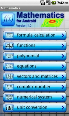 Οι εξετάσεις σε σχολεία και πανεπιστήμια πλησιάζουν και ένας από τους μεγαλύτερους πονοκεφάλους των μαθητών είναι τα μαθηματικά. Το «Mathematics for Android» είναι ίσως η πληρέστερη εφαρμογή άλγεβρας, ιδανική για να επαληθεύετε τα αποτελέσματα που έχετε βρει στις ασκήσεις που λύνετε. Αξίζει να σημειωθεί πως το «Mathematics for Android» όχι μόνο είναι δωρεάν, αλλά σε αντίθεση με παρόμοιες εφαρμογές, δεν απαιτεί τη χρήση internet για να καταλήξει σε αποτελέσματα και δεν εμφανίζει διαφημίσεις!