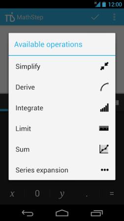 Η εφαρμογή MathStep είναι μια αριθμομηχανή τσέπης με ενσωματωμένη μια ολόκληρη μηχανή που υπολογίζει άνετα και γρήγορα αλγεβρικά συστήματα. Αυτό σημαίνει ότι μπορεί να λύσει τα μαθηματικά προβλήματα για σας! Διαθέτει ένα πρόγραμμα επεξεργασίας που τη στιγμή που γράφεται την εξίσωση, αυτόματα η εφαρμογή δίνει μια προεπισκόπηση της λύσης, ενώ ακόμη σας δίνει συμβουλές για το πως θα λύσετε κάποια πρόβληματα, ώστε να μην έχετε μόνο παθητική συμμετοχή και να καταλαβαίνετε καλύτερα τις εργασίες που σας προκύπτουν. Μπορεί να λειτουργήσει ακόμη και χωρίς σύνδεση στο internet!
