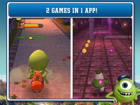 Από τα κινηματογραφικά στούντιο της Disney έρχεται η καινούρια ταινία Monsters University και φυσικά δεν θα έλειπε από το android. Οι Mike, Sulley, and Squishy ετοιμάζονται για το πανεπιστήμιο τεράτων στη διάρκεια του οποίου θα προσπαθήσουν να γίνουν τα πιο τρομαχτικά τέρατα. Η εφαρμογή παριέχει 2 ξεχωριστά είδη παιχνιδιών. Στο πρώτο πρέπει να κυνηγήσετε τον Archie το φοβισμένο γουρούνι. Στις 30 πίστες του παιχνιδιού πρέπει να πιάσετε τον Archie έτσι ώστε να μπορέσετε να συνεχίσετε στην επόμενη. Το επόμενο παιχνίδι είναι να αποφύγετε τα τοξικά απόβλητα που πέφτουν από ψηλά. Με το ρολόι να μετράει ανάποδα πρέπει σε μικρό χρονικό διάστημα να τελειώσετε την κάθε πίστα. Τρέξτε λοιπόν όσο περισσότυερο μπορείτε.