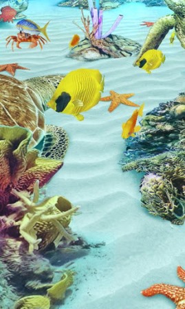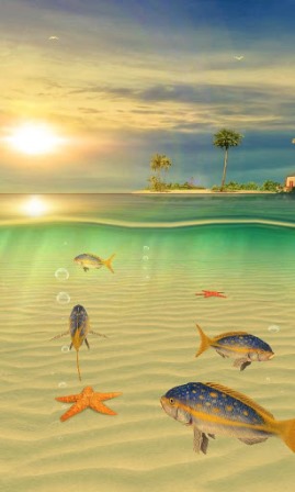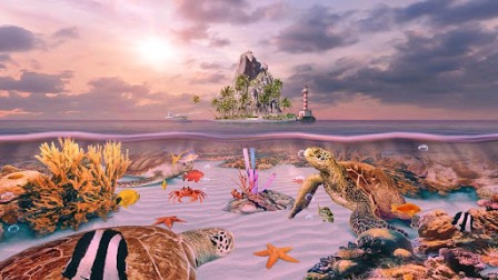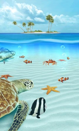 Γεμίστε την οθόνη του κινητού και της ταμπλέτας σας με το πιο όμορφο ενυδρείο που έχετε δει. Υπέροχα ψαράκια και κρυστάλλινα νερά θα σας κρατούν συντροφιά κάθε φορά που κοιτάτε την οθόνη. Τα ψάρια, οι χελώνες και τα μικρά καβούρια καταλαβαίνουν και αντιδρούν σε κάθε σας άγγιγμα. Αγγίξτε την οθόνη και εξερευνήστε το βυθό καθώς τα χρώματα της δύσης κάνουν τα νερά να παίρνουν φωτιά. Φυσικά είναι πλήρως εξατομικευμένο ώστε να μπορείτε να αφαιρείτε και να προσθέτετε ότι θέλετε ανά πάσα στιγμή. Εκτός αυτού είναι πολύ φιλικό ως προς την μπαταρία σας. Αποκτήστε λοιπόν το δικό σας ενυδρείο ή καλύτερα το δικό σας ωκεανό με τις περισσότερες και όμορφότερες θαλάσσιες χελώνες που έχετε δει.