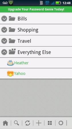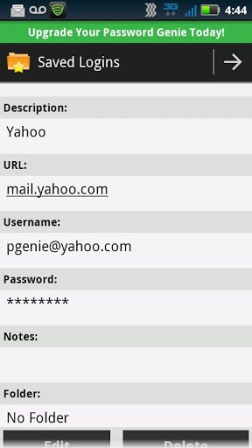 Password mainΤα smartphones εξυπηρετούν την καθημερινότητά μας με τον καλύτερο δυνατό τρόπο. Απλοποιούν κομμάτια της ζωής μας και θυμούνται πράγματα για εμάς. Λογαριασμοί τραπεζών, κωδικούς πρόσβασης, ονόματα χρηστών και πολλά άλλα. Εμπιστευόμαστε καθημερινά ευαίσθητες πληροφορίες στα κινητά μας γιατί απλά μας βολεύει, αλλά όλοι έχουμε το φόβο τι θα γίνει αν το κινητό κλαπεί ή χαθεί. Το Password Genie μας βγάζει από το φόβο αφού αποθηκεύει και κυρίως προστατεύει όλες τις ευαίσθητες πληροφορίες για εμάς. Με σύστημα κρυπτογράφησης αλλά και συγχρονισμό με τον υπολογιστή και το Mac έχει διαθέσιμους όλους τους κωδικούς, μόνο για εμάς και για κανένα άλλο.  Απλό και εύκολο στη χρήση θα σας βοηθήσει να θυμάστε τα πάντα, ενώ θα είστε σίγουροι πως ότι και να γίνει κανένας δεν θα έχει πρόσβαση στις πληροφορίες σας. Η εφαρμογή είναι δωρεάν για δοκιμαστική χρήση ενώ κοστίζει περίπου 6 ευρώ για ένα χρόνο.