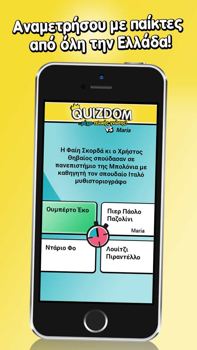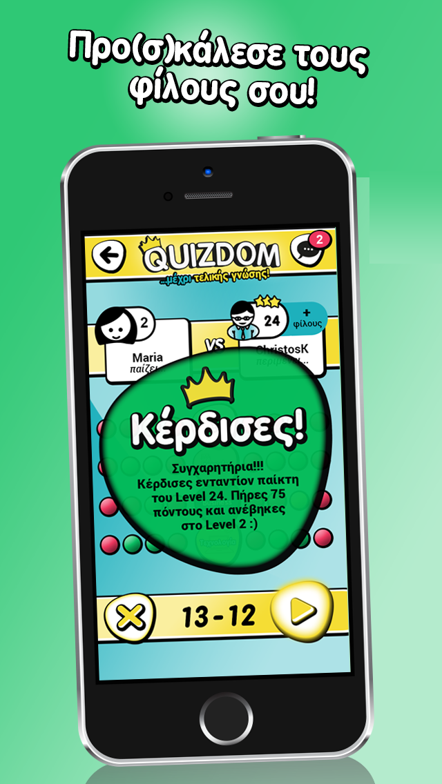 Πώς θα σας φαινόταν να δοκιμάζατε τις γνώσεις σας παίζοντας με φίλους και ανθρώπους από όλη την Ελλάδα, χρησιμοποιώντας μόνο το κινητό σας; Το Quizdom, ένα νέο app που κυκλοφόρησε μέσα στο καλοκαίρι, ήρθε να καλύψει αυτό το κενό στο ραγδαία αναπτυσσόμενο τοπίο των ελληνικών εφαρμογών και γνωρίζει ήδη μεγάλη απήχηση. Πρόκειται για ένα παιχνίδι ερωτήσεων γνώσης με social χαρακτήρα, καθώς σου επιτρέπει να αναμετρηθείς σε real time με φίλους και άλλους χρήστες από όλη την Ελλάδα. Σκοπός των δημιουργών του ήταν να ενσωματώσουν τον εκπαιδευτικό χαρακτήρα των εφαρμογών του είδους σε ένα πιο ενεργό και διαδραστικό πλαίσιο, συνδυάζοντας έτσι γνώσεις, ανταγωνισμό και φυσικά διασκέδαση.