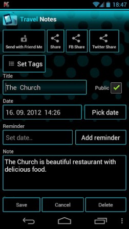 TravelerComm mainΣτις μέρες μας είναι πολύ εύκολο να ταξιδέψει κανείς σε όλο το κόσμο, με τις διεθνείς πτήσεις ολοένα και να αυξάνονται αλλά και να γίνονται όλο και πιο φθηνές. Αν είστε από εκείνους που ταξιδεύουν συχνά είτε για διακοπές είτε για δουλειά, θα έχετε καταλάβει ότι τα smartphones αποτελούν ένα εργαλείο που πρέπει να έχει κάθε ταξιδιώτης μαζί του.   Δεν θα ήταν πολύ ωραίο αν μπορείτε να μοιραστείτε φωτογραφίες και κείμενα από οπουδήποτε στον κόσμο χρησιμοποιώντας την android συσκευή σας, με όποιον νομίζετε ότι αξίζει να τις δει και να διαβάσει τις εμπειρίες σας; Αυτό κάνει και το travelercomm. Χρησιμοποιώντας το email εκείνων που θέλετε, μοιραστείτε τις εμπειρίες σας από τα ταξίδια απλά και γρήγορα σε πραγματικό χρόνο. Απλά προσθέστε κείμενο και φωτογραφίες στην εφαρμογή και πατήστε sent. Αυτό ήταν. Οι άνθρωποι που αγαπάτε θα ενημερώνονται για τις περιπέτειές σας σε όποιο μέρος του κόσμου και αν είστε.