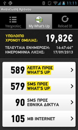 – έλεγξε το υπόλοιπο σου και δες άμεσα τα διαθέσιμα λεπτά ομιλίας, SMS και MB