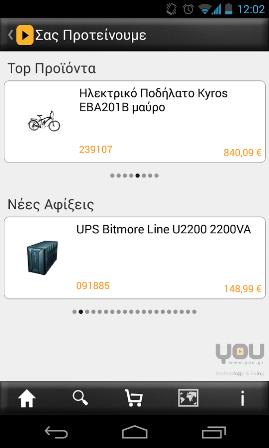 Η εφαρμογή You.gr επιτρέπει σε κάθε χρήστη Android τηλεφώνου να περιηγηθεί στα Top Προϊόντα & στις Νέες Αφίξεις του you.gr αλλά και σε όλο τον κατάλογο προϊόντων, να ενημερωθεί για τις νέες καταπληκτικές προσφορές και να σκανάρει το barcode του προϊόντος της επιλογής του με τη χρήση του ενσωματωμένου barcode reader.